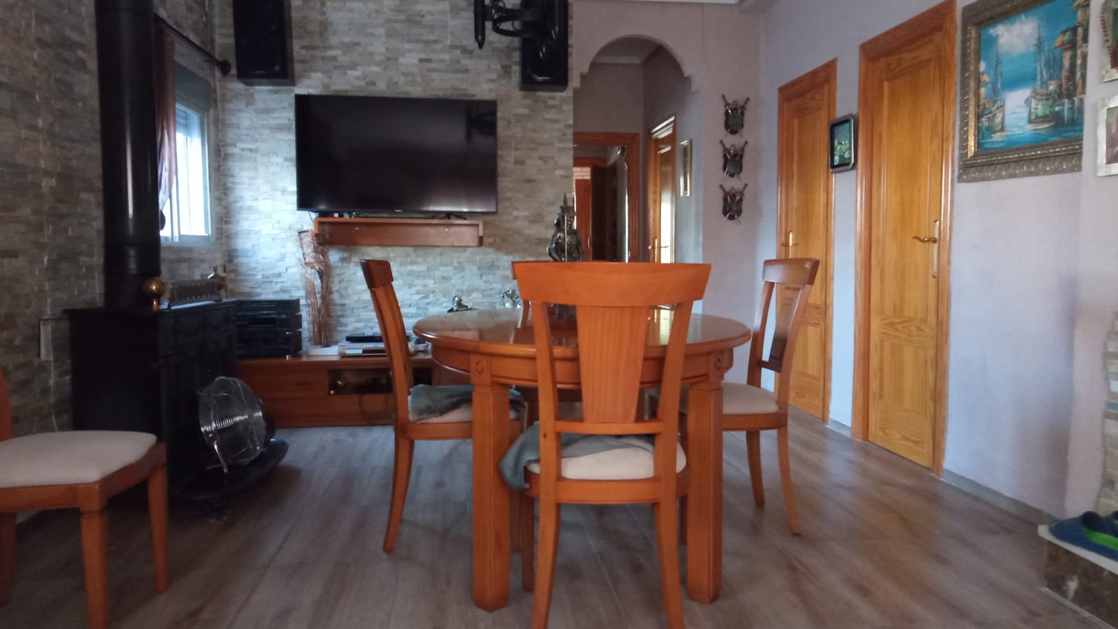 El chalet cuenta con un salón principal amplio, perfecto para reuniones familiares o momentos de relax. Sus grandes ventanales permiten la entrada de luz natural, creando un ambiente cálido y acogedor. Además, dispone de una chimenea de leña, ideal para disfrutar en invierno. La propiedad también incluye un segundo salón, proporcionando aún más opciones para el descanso o el entretenimiento.