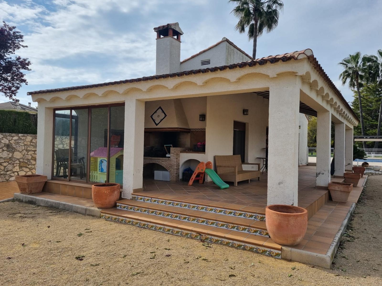 La casa dispone de cuatro cuartos de baño completos, lo que garantiza comodidad para toda la familia. Situado en una parcela de 3.514 m², podrás disfrutar de un amplio espacio exterior donde se encuentra una magnífica piscina privada, ideal para refrescarse en los días soleados. Además, el amplio porche con paellero es perfecto para organizar reuniones con amigos y familiares mientras disfrutas de la naturaleza que rodea el chalet independiente en plaza Número 6.